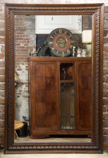 Antique French Carved Walnut Leaf Motif Mirror
