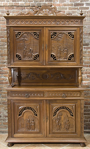 Antique French Chestnut Buffet a deux Corps from Brittany with wonderful carving