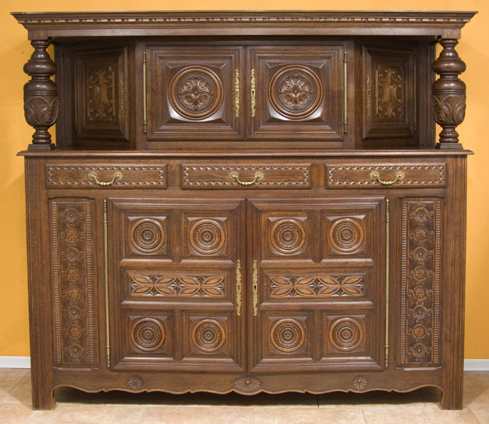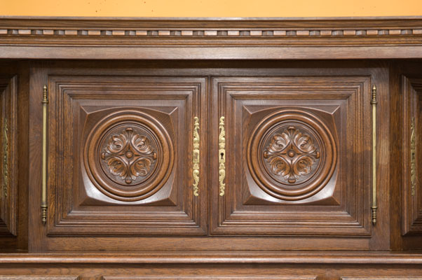 Antique French Oak Heavily Carved Buffet with 4-Door Top, Buffet Bottom 3 Drawers, 2 Doors